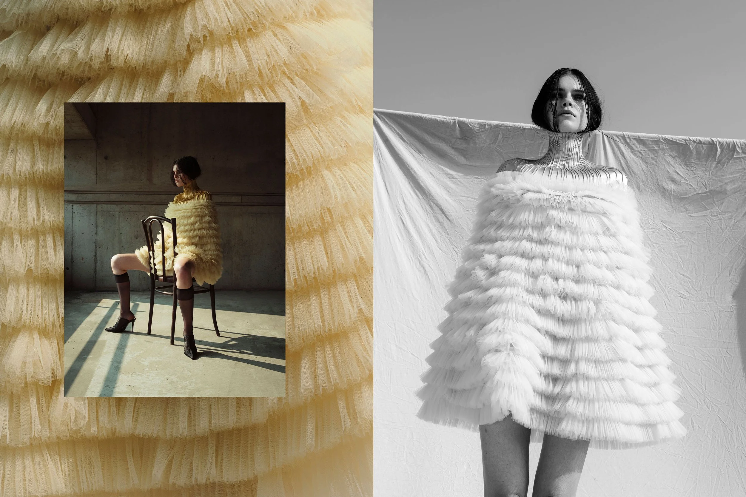 Jessica Walter's couture collection was showcased during Paris fashion week and has been published in several international fashion magazines such as Afi Mag, FEROCE, KALTBLUT, LUCY‘S and L‘Officiel Arabia.